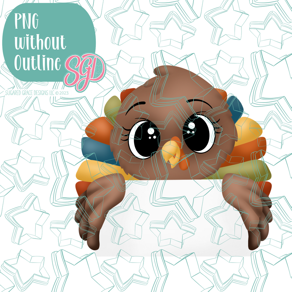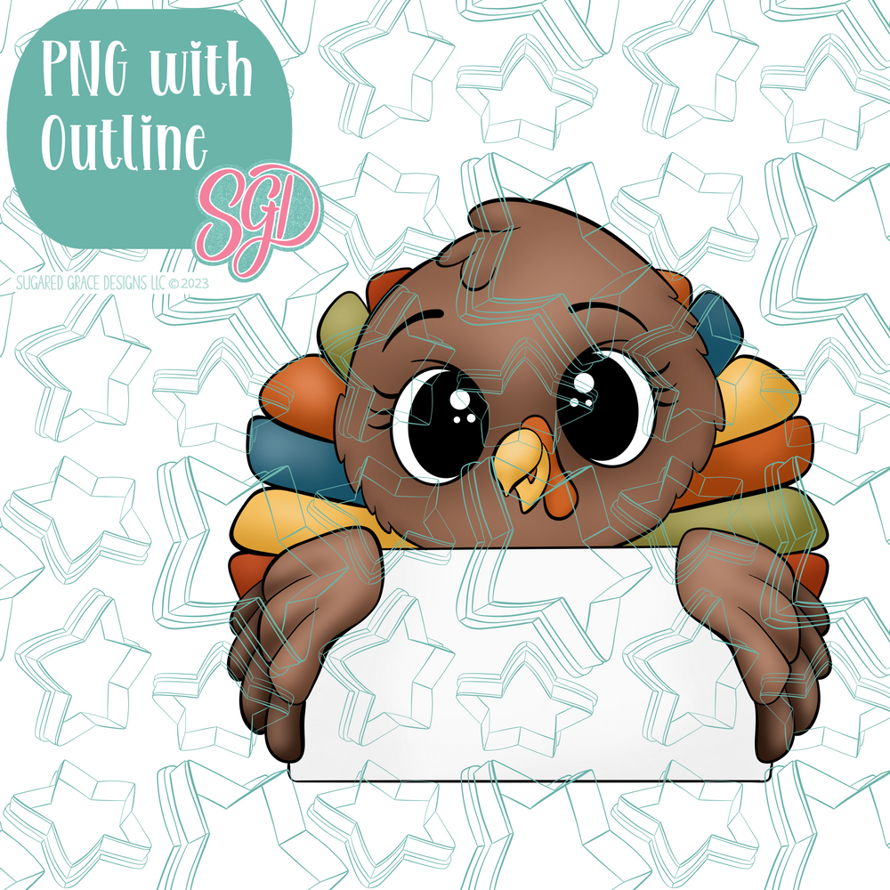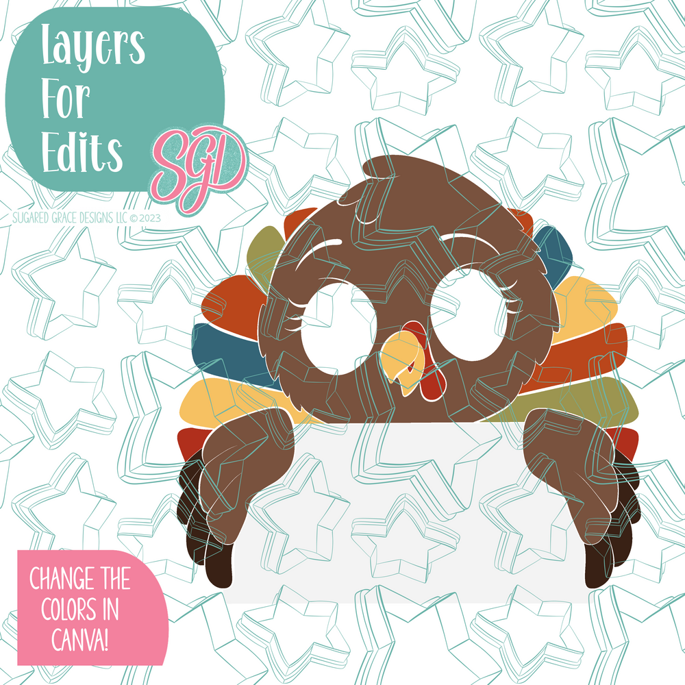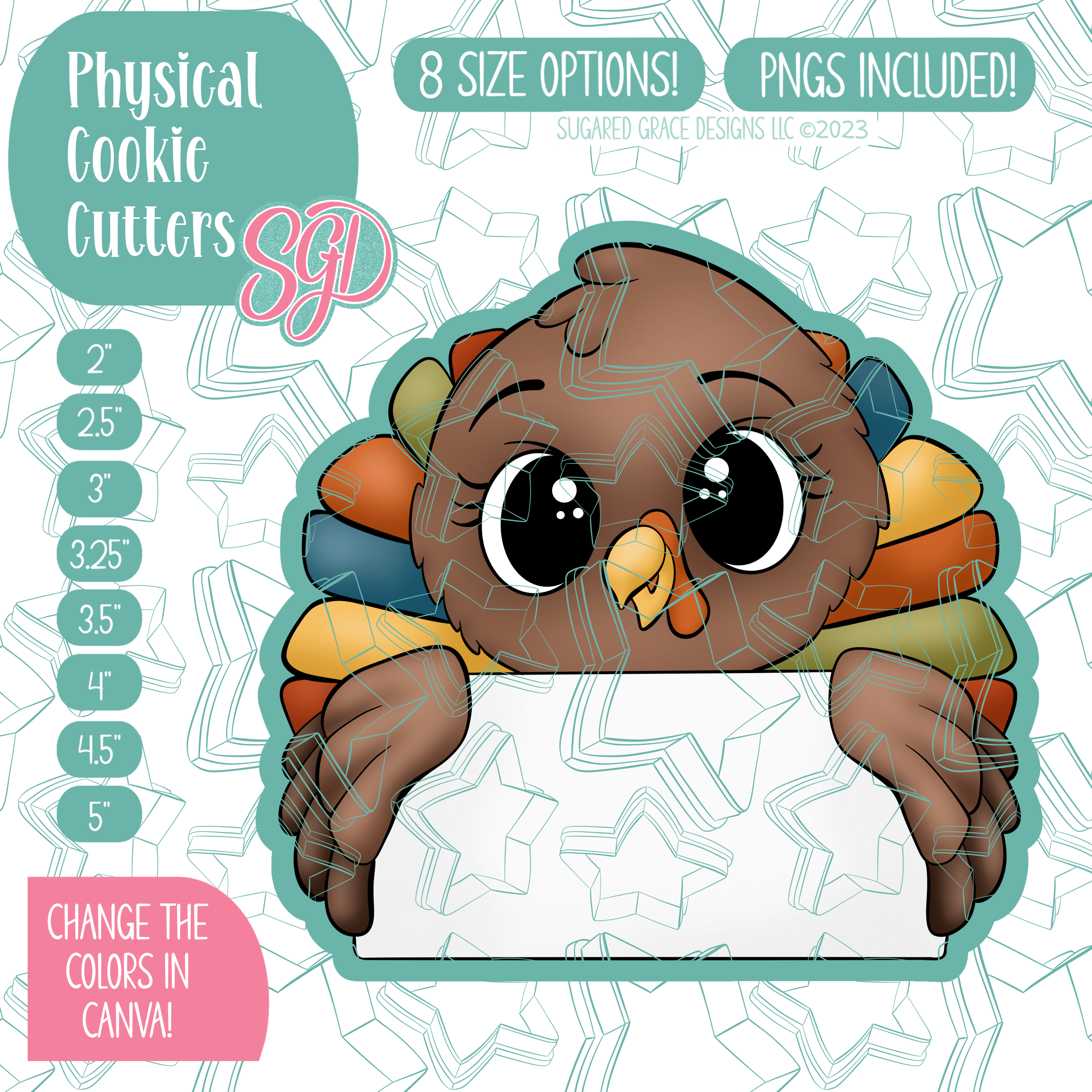 Place settings that double as keepsakes! This bright eyed turkey holds a customizable plaque you can hadn’t write with an edible marker, print with an edible ing printer or decorate with piping bag and projector. It’s perfect for Thanksgiving dinner, hostess favors, or a centerpiece on your pie platter. The plaque can have a guest’s name, a thankful note, or any little message that makes the table feel personal. Clean shapes make decorating fast and fun!