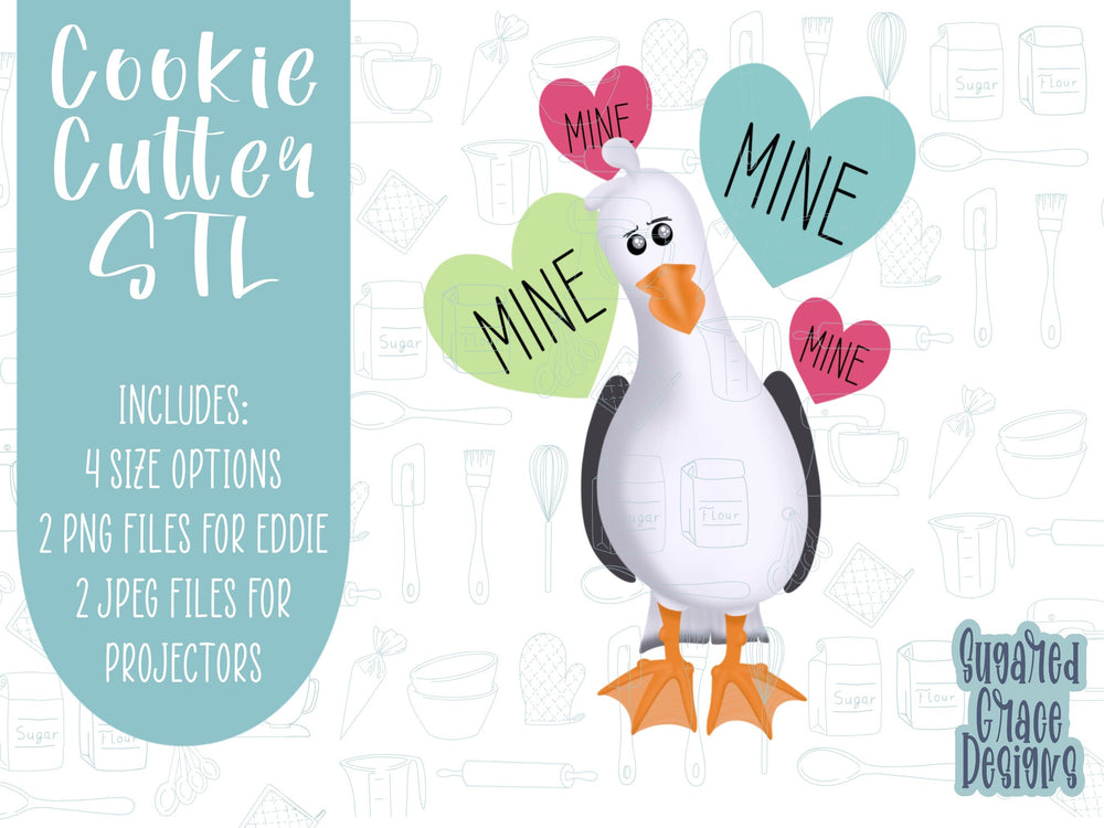 Valentine’s Day pelican Cookie cutter stl files for 3d printing with matching printable png images for Eddie edible printers