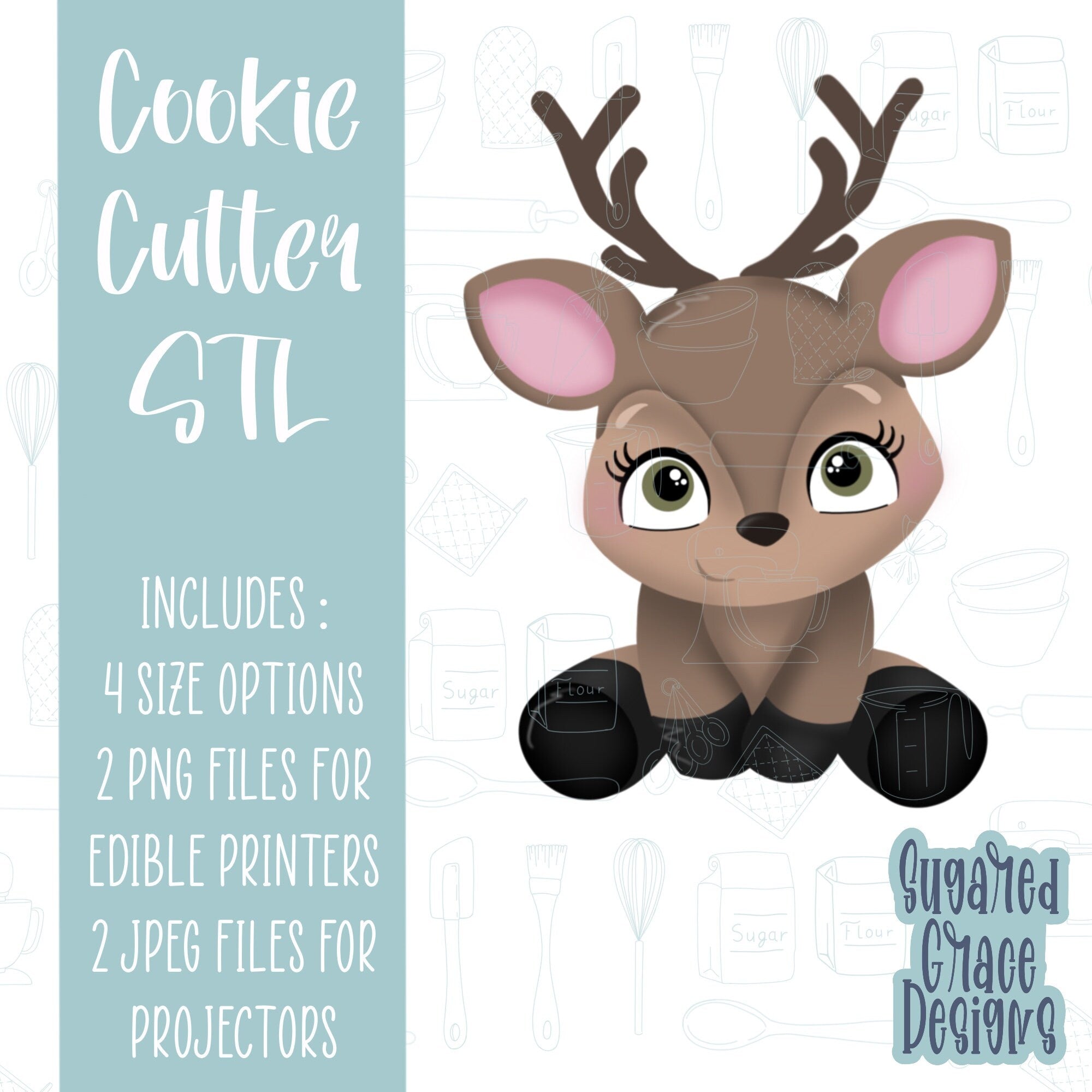 Woodland Deer or buck with antlers cookie cutter stl file for 3D printing with png printable instant download for Eddie the edible printer