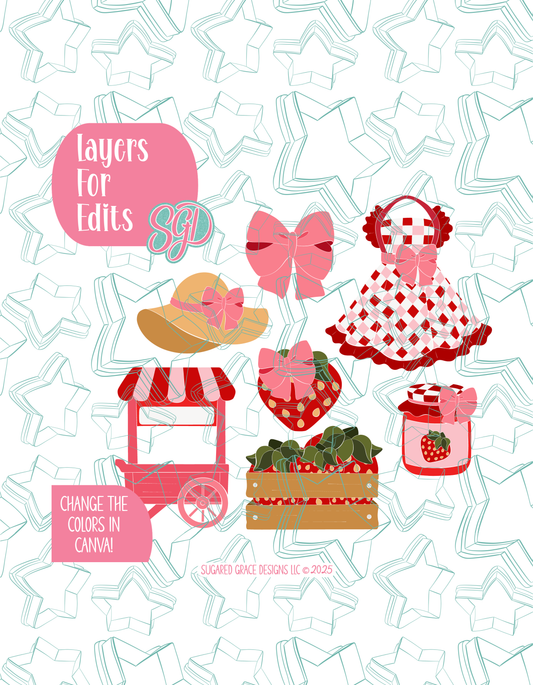 Strawberry Market Set of 6 Designs for Edible Ink Printers - Hand Drawn Editable Graphics (Digital Download)